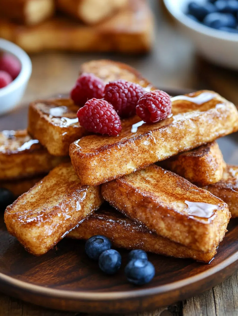 Diese herzhaften Zimttoast-Stäbchen verwandeln ein gewöhnliches Frühstück in ein köstliches Fingerfood-Erlebnis, das sowohl Kindern als auch Erwachsenen schmeckt. Die perfekte Balance aus in Eiermilch getränktem Brot mit warmem Zimt zaubert ein praktisches und beliebtes Frühstück.
